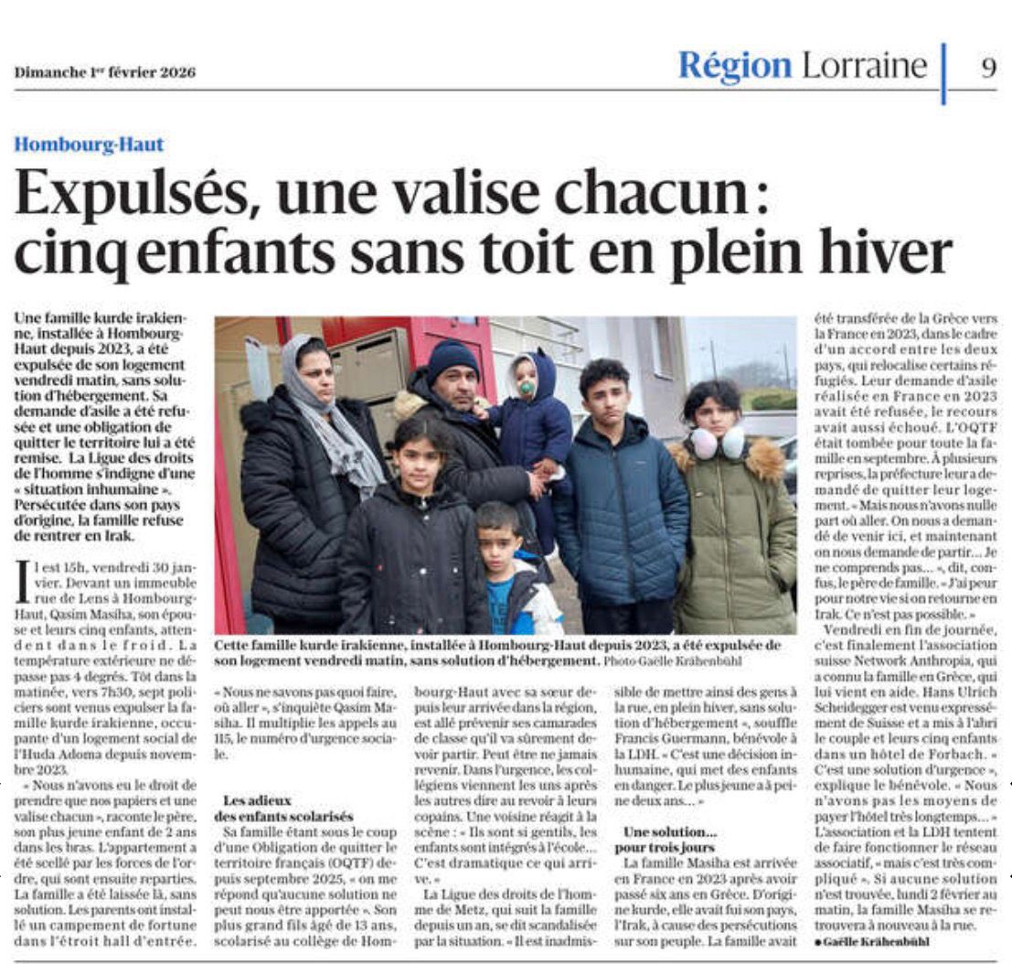Regionalzeitung Frankreich: Kurdische Familie im Winter auf die Strasse gestellt